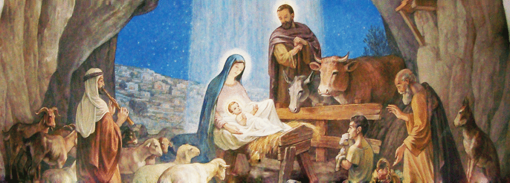Shepherds watching their flocks were terrified when an angel of God appeared in brilliant light. “Do not be afraid,” the angel said. “My good news will bring great joy to everyone. Today in the city of David, a savior has been born, the anointed Messiah. You will know who he is when you see a baby wrapped in cloth and lying in a manger.”